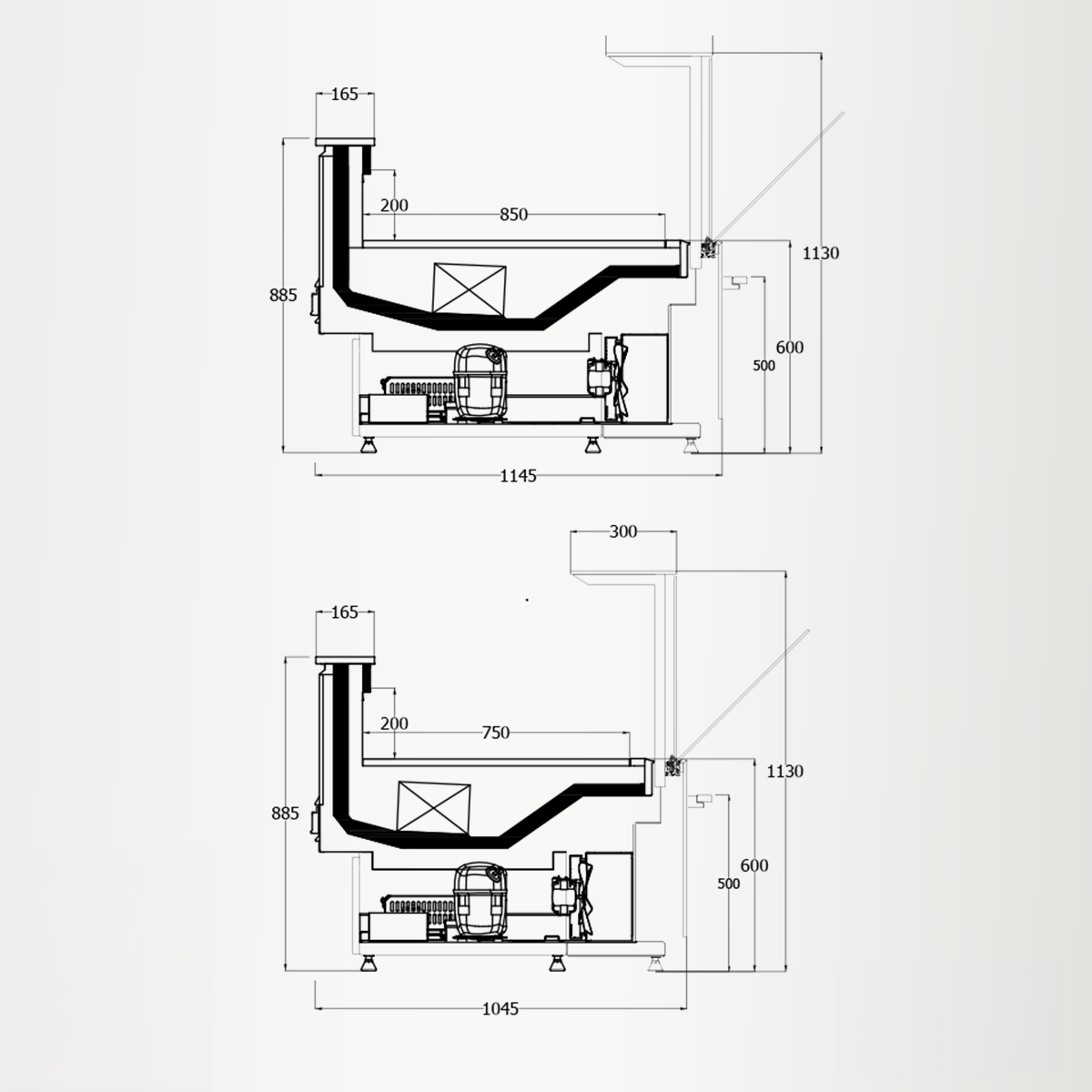 Cold Cabinets manufactures its counter in variable depths and models so that we meet the exact requirements of the shop floor. While keeping the wide range of models we manage to combine various types of cabinets in beautiful transitions. The minimalist design lets us have a continuous lineup of different models with great harmony. With numerous fittings and accessories, the full height and semi-multideck range meets all of your individual needs.